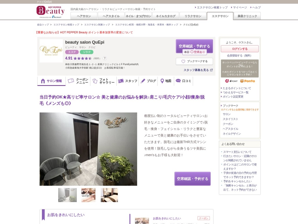 東海大学前エリアで最も遅くまで営業している脱毛サロンの一つが「beauty salon QuEpi」です。