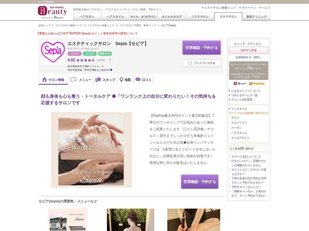 - ブライダルビューティ:エステティックサロン Sepia(〒328-0007 栃木県栃木市大塚町1234−5)